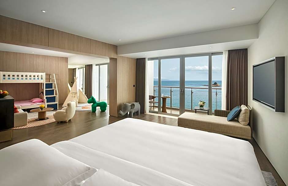Guests will have a special experience as this suite offers a pool with a view and a hot tub. The spacious air-conditioned suite provides a TV, soundproof walls, a mini-bar, executive lounge access as well as sea views. The unit offers 1 bed.